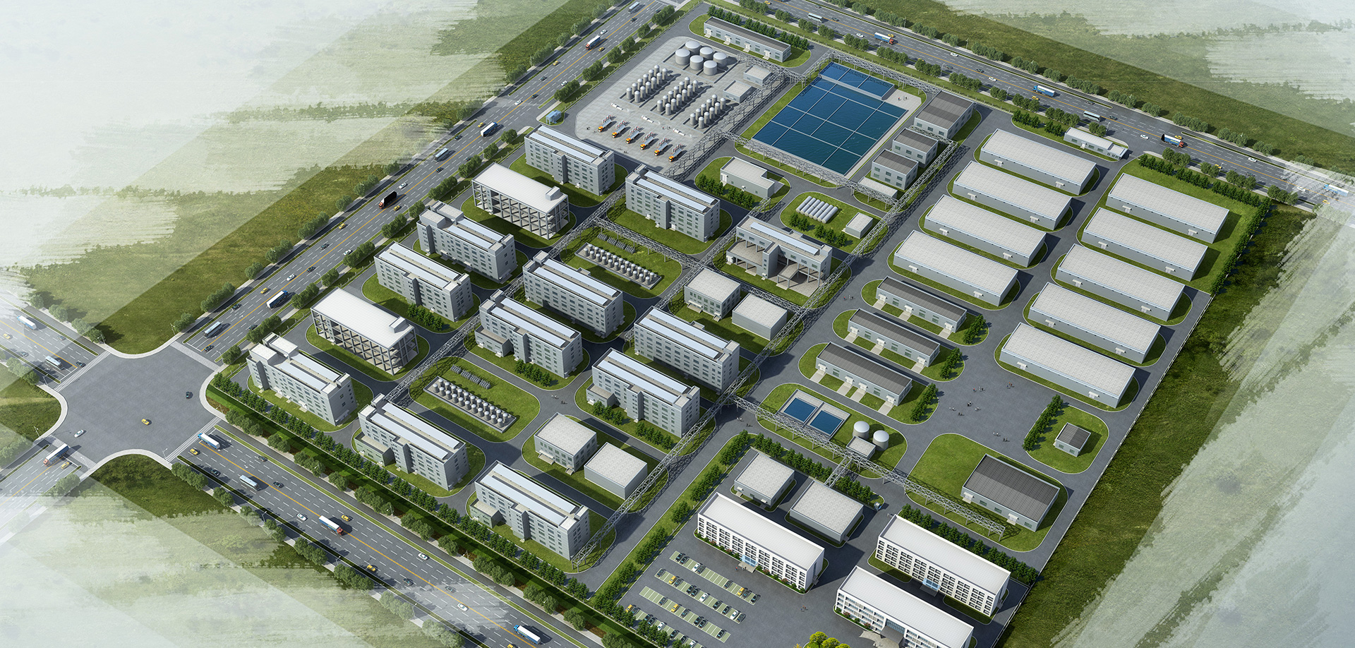 建設(shè)產(chǎn)品生產(chǎn)中心、環(huán)保處理中心、倉(cāng)儲(chǔ)管理中心、公用工程中心、分析研究中心等區(qū)域